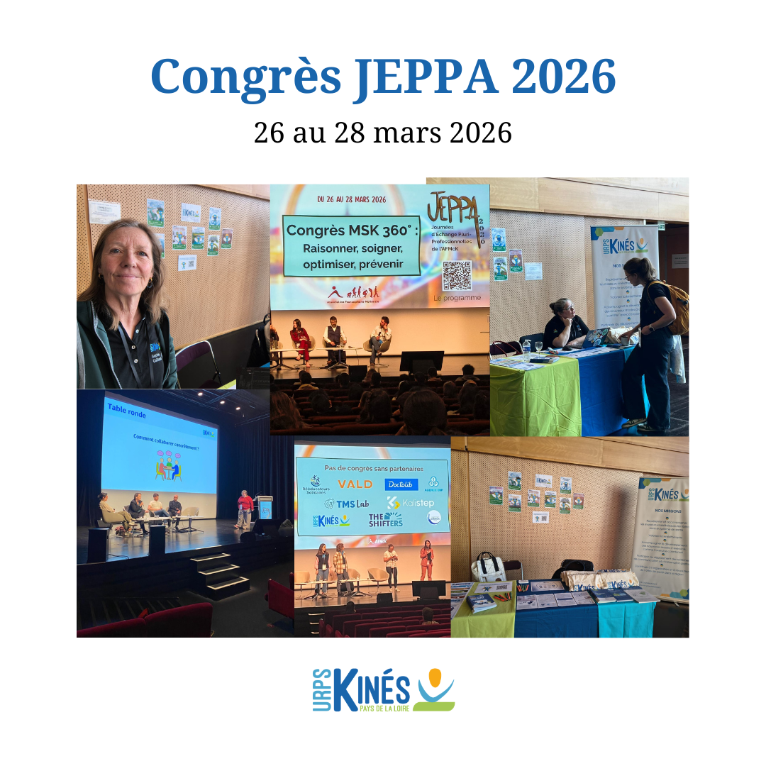 Un grand merci également aux organisateurs pour leur accueil, aux participants et à nos élus mobilisés pour représenter l’URPS Kinés Pays de la Loire lors de cet évènement.